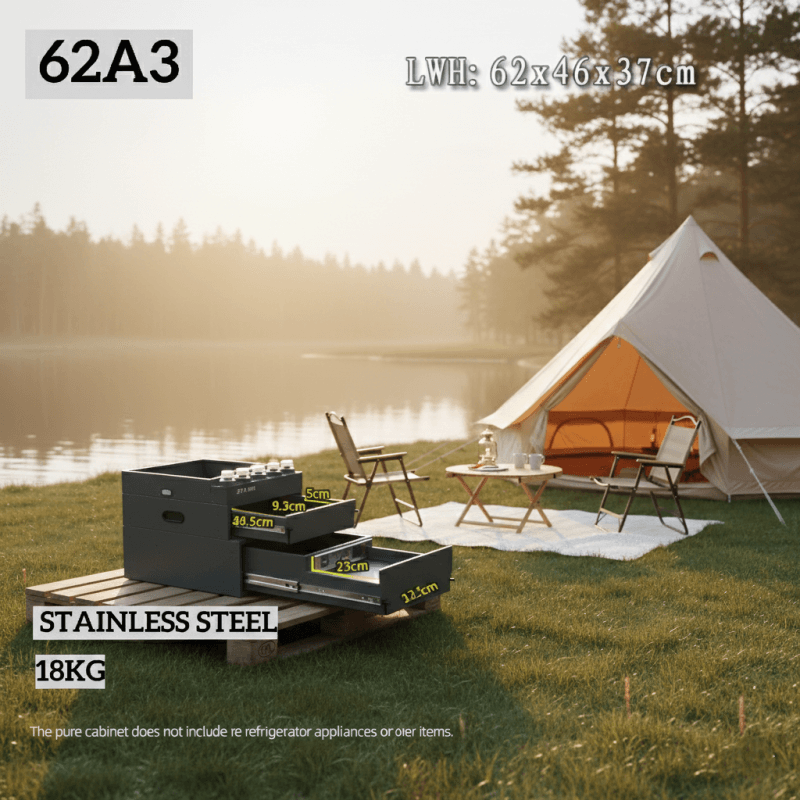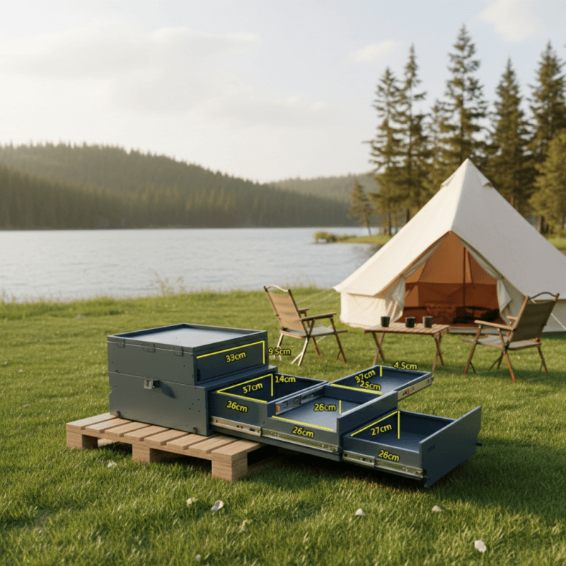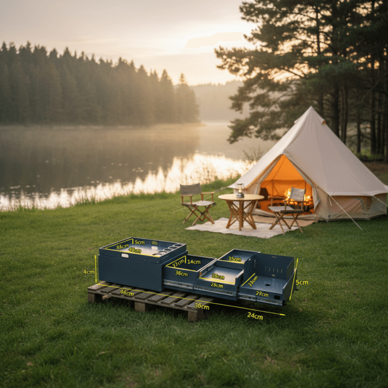 Standard camp tables are wobbly and never where you need them. The RV Outdoor Kitchen Workspace Cabinet creates a rock-solid, extended countertop right off your tailgate. It solves the "no room to chop" problem, giving you a professional-grade prep surface alongside your stove.