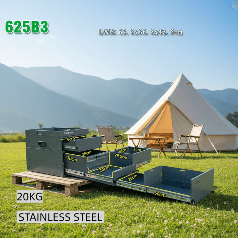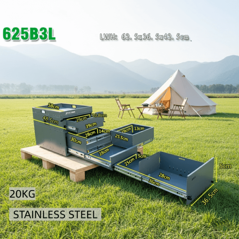 If you camp every month (or more), you need a kitchen that can keep up. This premium 625 model is built with heavy-duty steel and reinforced components that stand up to frequent use. The 50kg load capacity means you can use even the largest car fridges, and the premium work surface resists scratches and stains. The 3 condiment compartments are designed for easy cleaning, and the entire unit is built to withstand rain, dust, and the rigors of overlanding. Whether you’re exploring remote trails every weekend or taking a cross-country camping trip, this kitchen won’t let you down. It’s the perfect investment for serious campers who want a durable, long-lasting outdoor cooking solution.