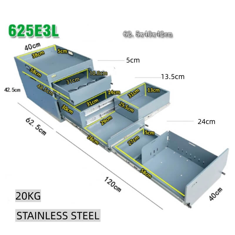 625E2M: 182.5x40x29cm - Storage Size: 625B3: 62.5x36.5x42.5cm