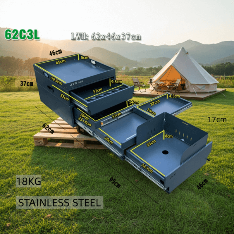 The Heavy Duty Steel Camp Kitchen is the toughest camp kitchen on the market. Built from ss , it’s designed for professional guides and extreme long-term overlanders.