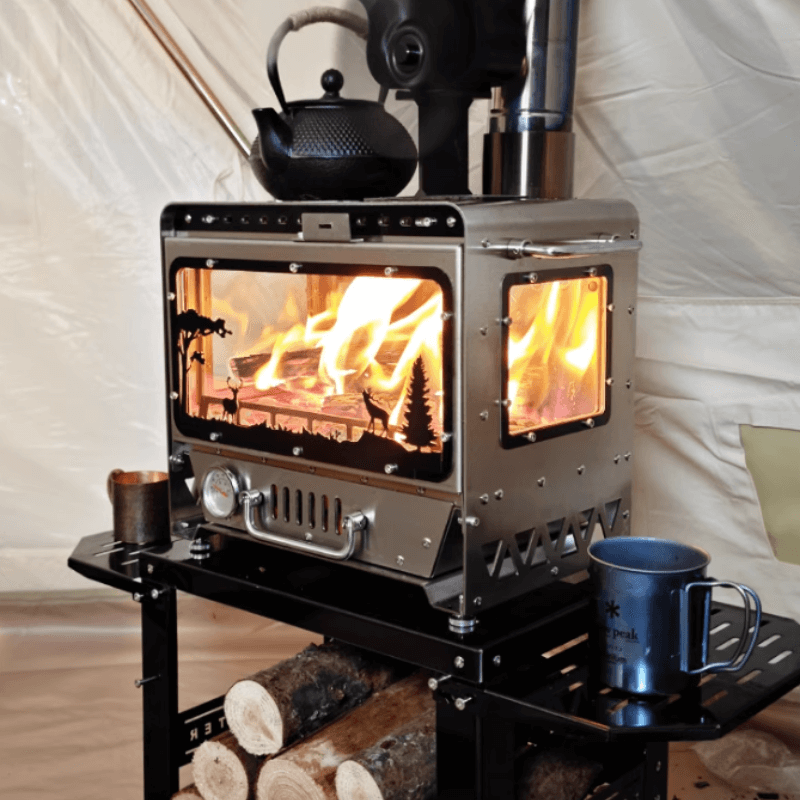 Whether you're warming a cozy 10–30m² cabin or a compact 5–15m² tent, the Tryhomy mini wood stove, with its 17kg lightweight and compact structure, seamlessly integrates into your outdoor life. Backed by a one-year warranty for complete peace of mind. Now, embark on your journey and let the fire and stars be witnesses to your adventure.